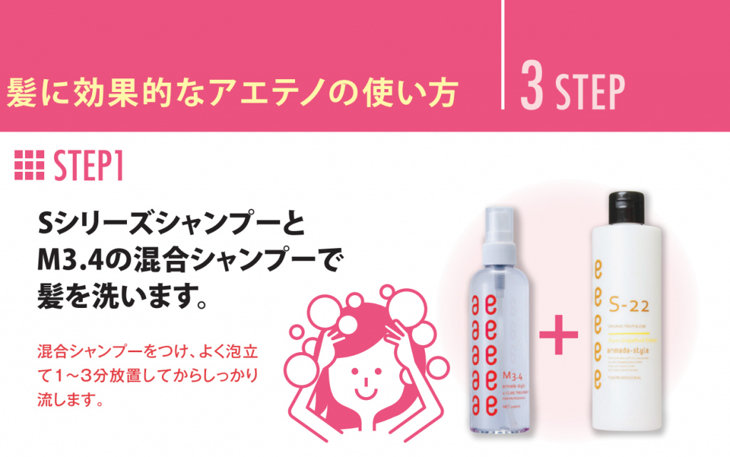 M3とPの紹介 果汁シャンプー アエテノ 流さなくていいノンシリコンタイプトリートメント